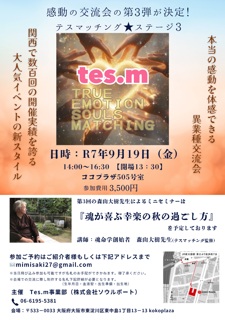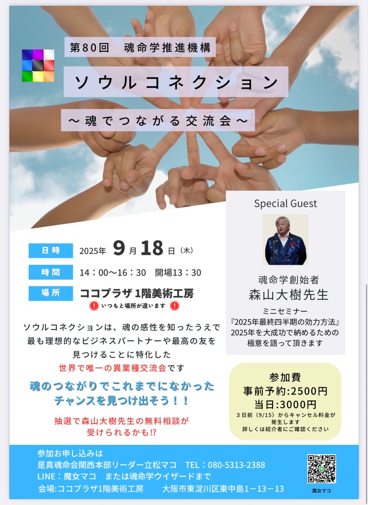 九神星の思想を、根底の部分で明確な学問として捉え、占術という分野を超えて現代に最も適した魂と命の調べを形にした哲学系心理学です。現在、この魂命学と同等または目的を同じにする学問は一切見あたりません。前述した、哲学、心理学が唯一近しい学問となりますが、これらはあくまで人間の思想を紐解いているに過ぎず、そう言った観点から見ますと神学や神秘学、魔学などの方に近い学問かもしれません。魂命学の定義である九神星思想とは、五次元思想という現世では図れない異空間思想なのです。弊社”ZSSホールディングス”に数多く在籍する占い師が、この魂命学を用いて人間関係悩み相談を始め、様々な悩みを紐解いていきます。新大阪駅という土地柄、色々な人と悩みが交差する街です。興味のある方は、口コミが広がっております”ZSSホールディングス”に足を運ばれてはいかがでしょうか。心よりお待ちしております。